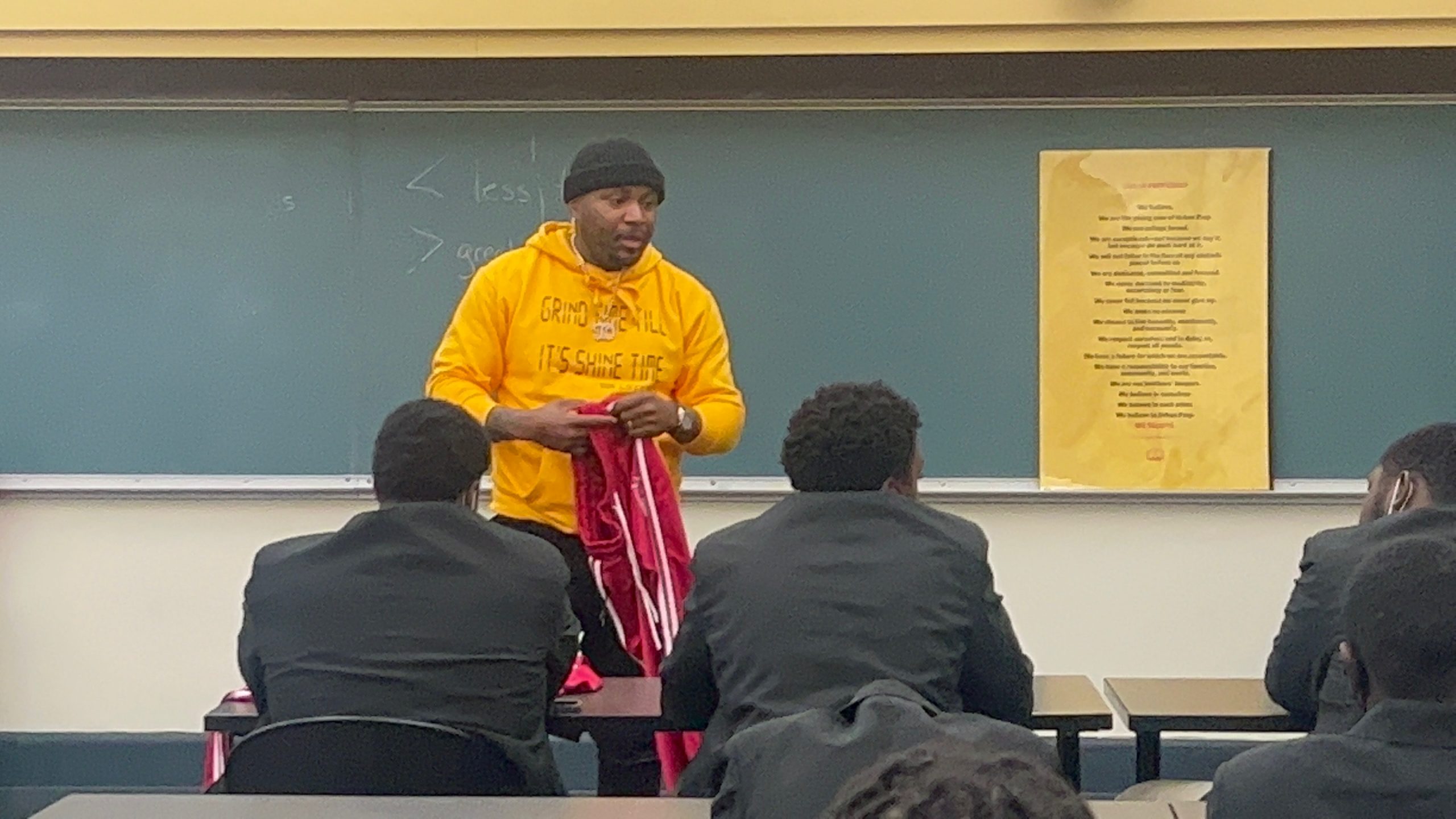 We Got You Covered (WGYC) partnered with Antonio Greer of YBE Apparel to share his story on how he made it out of Stateway Gardens to become a veteran employee with ComEd and an entrepreneur. He provided a blueprint for the boys on how to achieve their educational and life goals. Additionally he donated sweatsuits and t-shirts, to the boys at Urban Pep Academy West Campus.